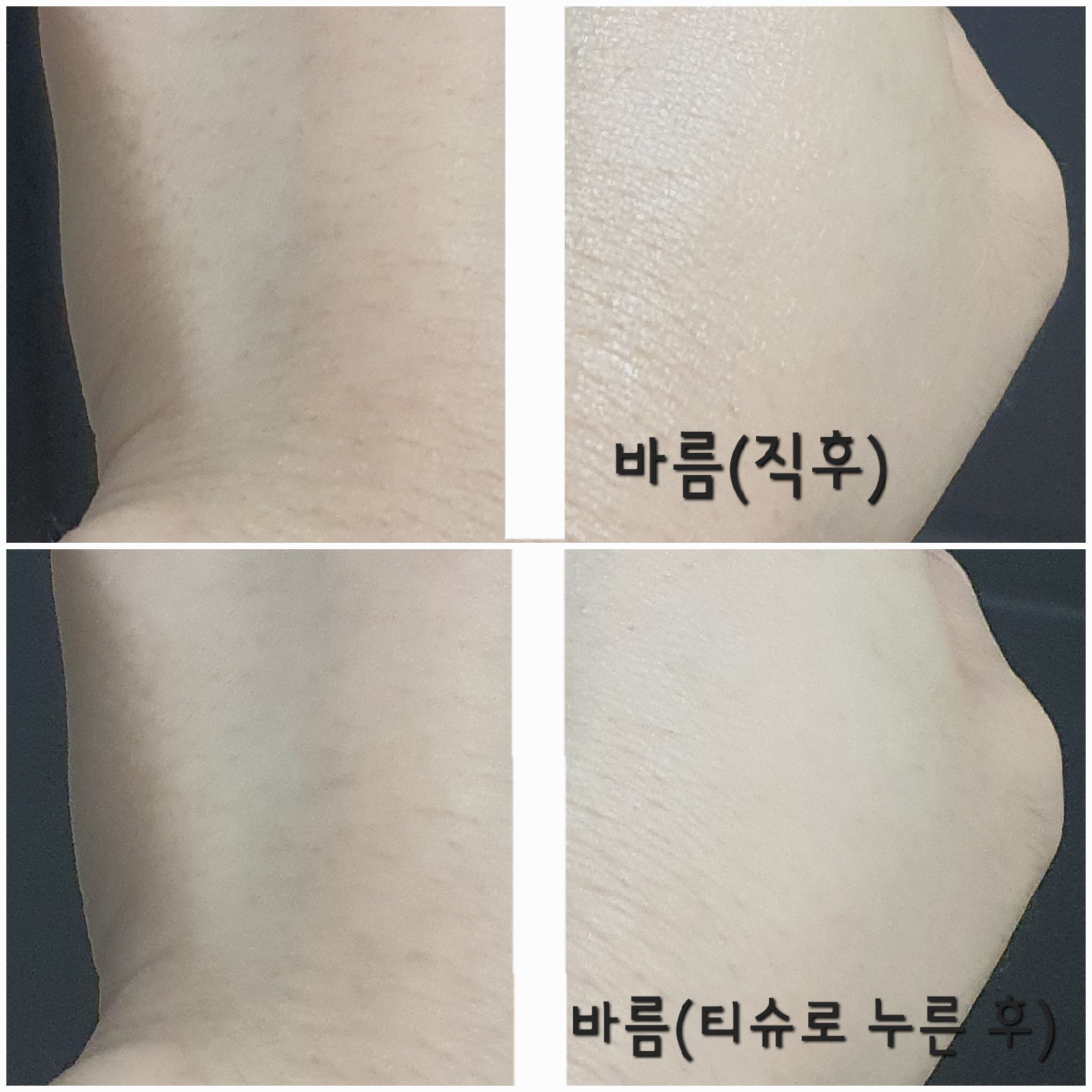 아무리 끈적임 없는 제품이라고 해도 바르면 약간의 유분기는 있기 마련입니다. 아주 간단한 방법인데, 바로 유분기를 한번 제거해 주는 것입니다.